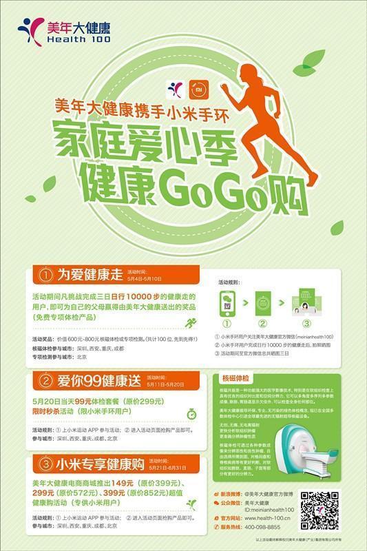 健康是最寶貴的財富:今年五月至六月,美年大健康攜手小米手環,家庭愛心季,健康GoGo購!愛,就用行動來表白!