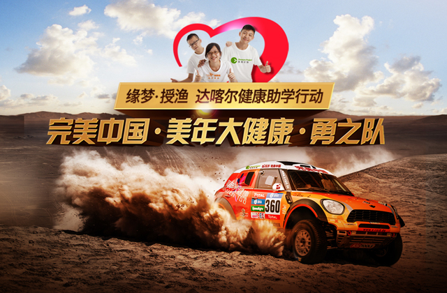 本次達喀爾之征郭美玲女士將駕駛360號越野賽車與中國第一領(lǐng)航員的廖岷共同完成13個賽段,上萬公里的艱難賽程,她是中國第一個參加達喀爾拉力賽的女賽車手。“完美中國·美年大健康·勇之隊”本次的達喀爾之行也將首次牽手公益,發(fā)起“緣夢·授漁健康助學(xué)行動”。作為“緣夢·授漁健康助學(xué)行動”發(fā)起人的郭美玲女士,將披上“授漁計劃”公益品牌的愛心戰(zhàn)甲出征達喀爾,用實際行動推動公益。屆時,“完美中國·美年大健康·勇之隊”的達喀爾之行將全程宣傳“授漁計劃”公益項目,讓“緣夢·授漁達喀爾健康助學(xué)行動”登上國際賽場的舞臺。