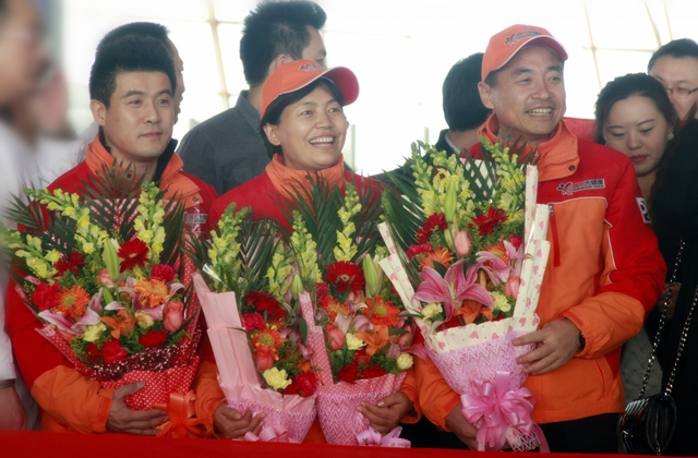 賽車手郭美玲(中)、領(lǐng)航員廖岷(右)、周勇(左)合影