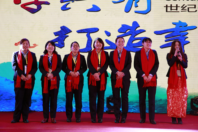 In the opening speech, Ms. Guo Meiling combined with the current conditions of world economy and analyzed the situation of health care industry. She pointed out, with the rising of people’s income level, the accumulation of wealth and the shift of health concepts, all these factors will continually drive medical consumption demand to diversified and multi-level development and people’s health concept also shifts from disease treatment to medical treatment prevention. So biological resonance technology and naturopathy will become the tendency of health prevention and management. When speaking of the group’s enterprise cultural practice in 2015, she said, we focused on promoting “6 Improvements” courses. Most employees joined in the training and had profound perceptions. The training changed many colleagues’ work and living state. Through sticking to clocking in every day, many colleagues reflect on their behaviors repeatedly and their spirit is obviously improved in spiritual level. In Century Galaxy Group, we are not only colleagues, but also kindred spirits; we not just earn money, but also gain capacity and temperament as well as spiritual growth. In terms of public benefit, we strongly pushed many public welfare programs in 2015, such as “Teaching how to fish plan”, etc. which helped many children from poor families to improve their skills and get rid of poverty. Meanwhile, Century Galaxy Group cooperated with other caring agencies and enterprises to push public welfare and charity actions. Besides, the chairwoman Ms. Guo Meiling also stated the importance of the group’s future development strategic relations as well as how to build a happy enterprise.